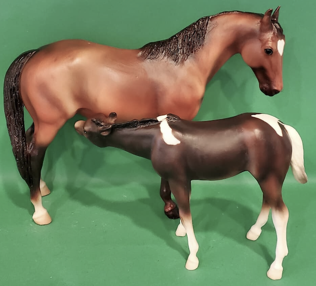 Included the Thoroughbred Mare and Suckling Foal. Introduced at BreyerFest 2002, so it was not pictured in the 2002 catalog. On the 2008 Retired List.
