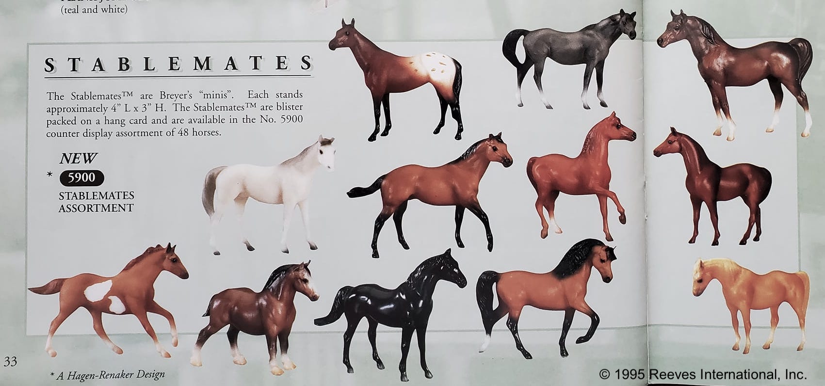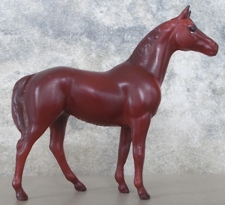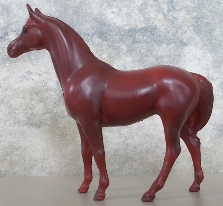 Red chestnut with no white markings. released as a single model called Thoroughbred Racehorse #5176 from 1995-1997 and part of the 12 Piece Stablemate Assortment set #5900 from 1995-1997.