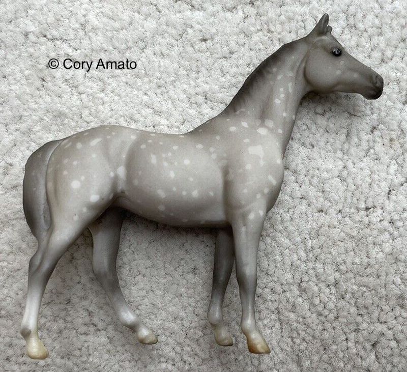 This set was released by Sears in 1998 as the 12 Piece Stablemate Gift Set #17384. The set included a red roan Arabian Stallion, chestnut peppercorn Citation, rose grey Draft Horse, bay appaloosa Morgan Stallion, bay Quarter Horse Stallion, rose grey Saddlebred, black pinto Seabiscuit, red dun Seabiscuit, dapple grey Swaps, liver chestnut Thoroughbred Mare, and a bay appaloosa Thoroughbred Lying and Standing foal.