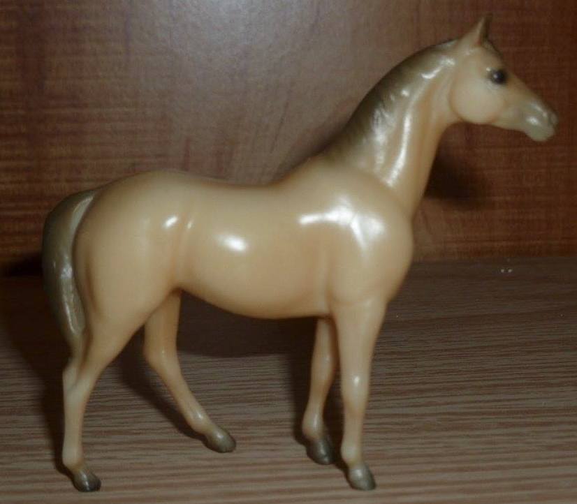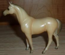 Rose grey color with darker grey mane and tail, no markings and grey hooves. Released through Sears in 1990 as the Stablemate Assortment II #495601. This set included a black Arabian Mare, buckskin Arabian Stallion, dusty chestnut Citation, black Draft Horse, chestnut Morgan Mare, dark red chestnut Morgan Stallion, white Native Dancer, palomino Seabiscuit, buckskin Silky Sullivan, rose grey Swaps, steel grey Swaps, and a red bay Thoroughbred Mare. These models were made from the heavier Cellulose Acetate plastic.