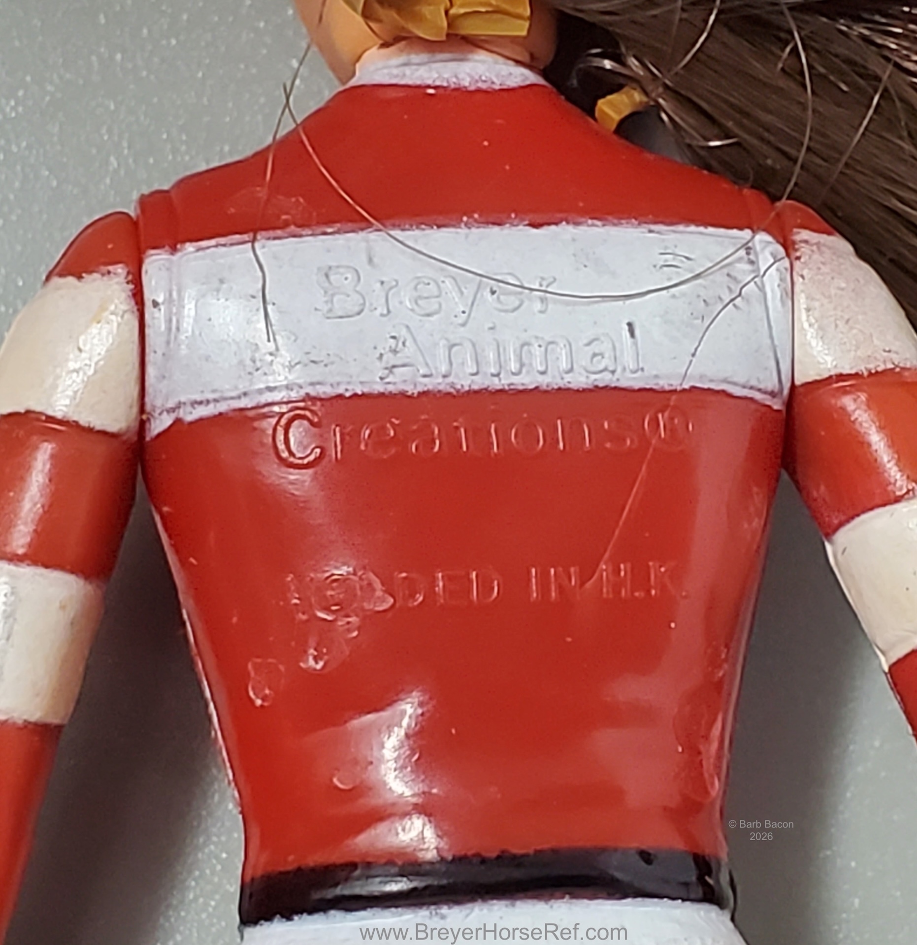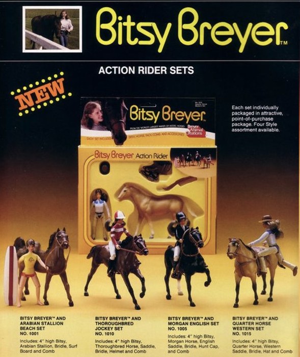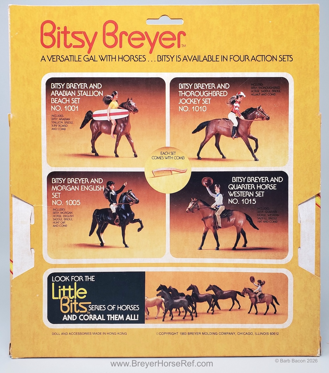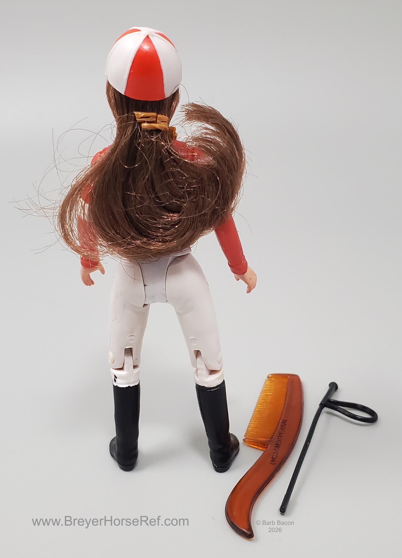 The Bitsy Breyer Jockey Set #1010 included Bitsy Breyer doll, Racing Tack, helmet and comb from 1984-1987, in Bay, Chestnut and Black.