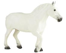 "As with any ancient race, the origin of the Percheron breed is shrouded in myth, for the foundations of the breed precede extensive documentation, and certainly pedigrees, by several centuries. Usually gray or black in color, Percherons are well muscled, and known for their intelligence and willingness to work. This French draft horse was imported into the United States in the 1800s. Americans discovered the usefulness of this draft horse. And other Americans discovered the pleasure of working with them at non-farm tasks, welcoming them to the horse shows and the growing recreation businesses. One of the most famous horse teams in the United States is the hitch of Percherons that has appeared multiple times at the Tournament of Roses Parade. New for 2022. Ships in a mail order box." www.breyerhorses.com.