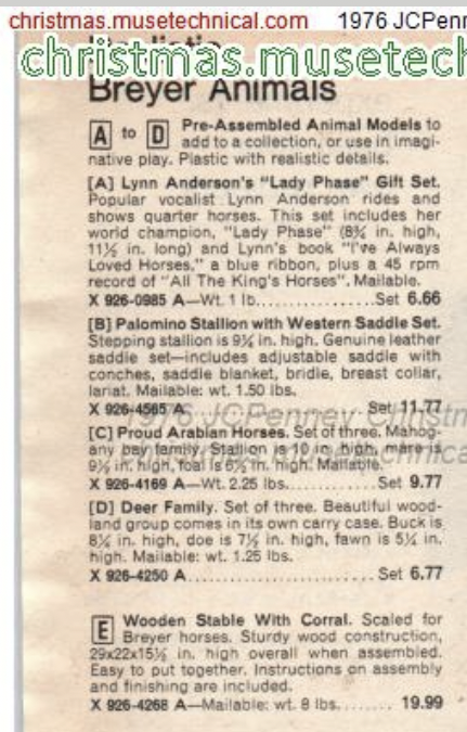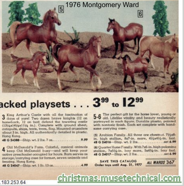 The Classic Arabian Family set was available through Sears from 1973-1979 and 1982-1983, through Montgomery Ward in 1976 and 1978, and through JC Penney in 1976.