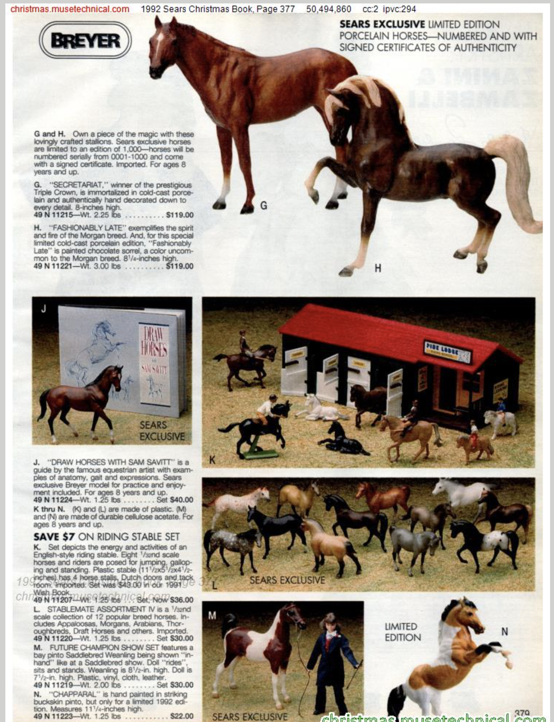 In 1992, 4500 sets were released through Sears as the Stablemate Assortment IV #495092. In 1994, 10,000 sets were released through JC Penney as the 12-Piece Stablemate Set #711094. The 1994 version has glossed eyes.