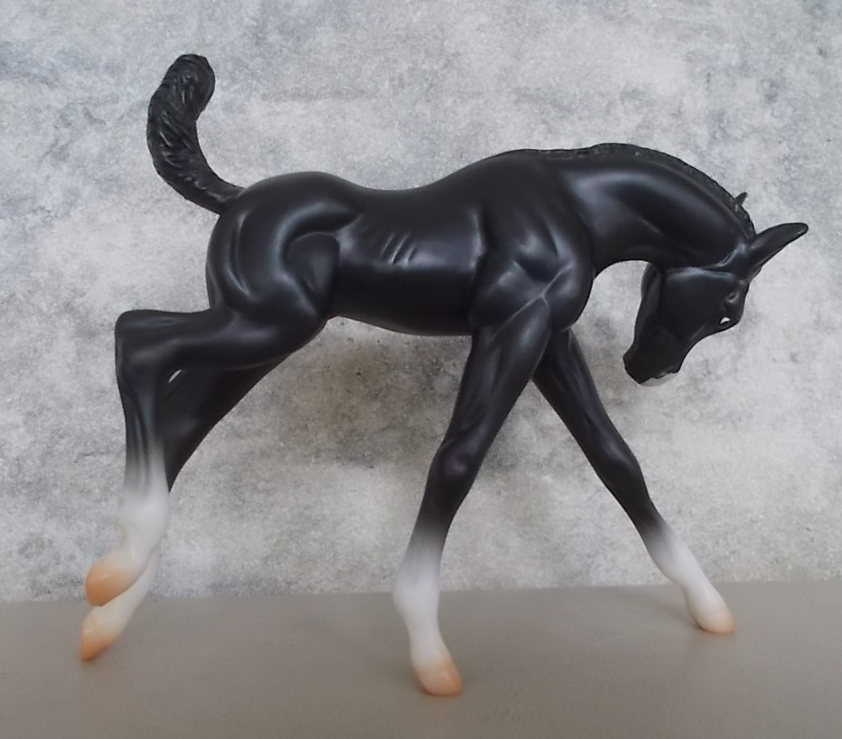 "Wild & Free (#301176) features a bay Mustang stallion and his black foal. Mustangs are feral horses found throughout North America, and are now considered icons of the American West. The stallion’s dynamic rearing pose makes him especially eye-catching." www.breyerhorses.com. In a set with the Rearing Mustang and American Quarter Horse Foal. These models were sold through Tractor Supply, but not exclusively.