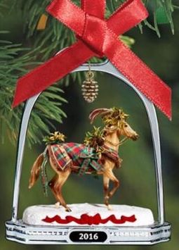 Made to resemble the Woodland Splendor Holiday Horse. 18th in the Stirrup Ornament Series.