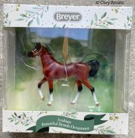 "The Arabian is one of the world’s oldest horse breeds, and is cherished for its intelligence, beauty, and athleticism. Whether competing in endurance events or modeling on the cover of a magazine, these spectacular horses have earned their place as one of the most popular breeds. Designed by artist Sommer Prosser, this elegant Arabian wears a gold rope halter with festive green tassels and represents the 21st model in a collectible series. A beautiful addition to your holiday décor, as well as a great gift for the horse lover in your life." www.breyerhorses.com.