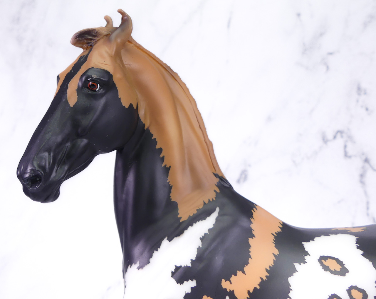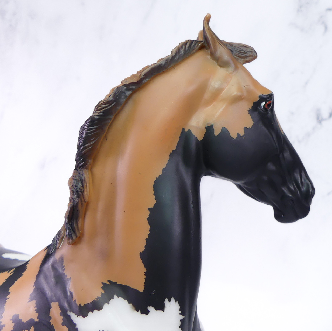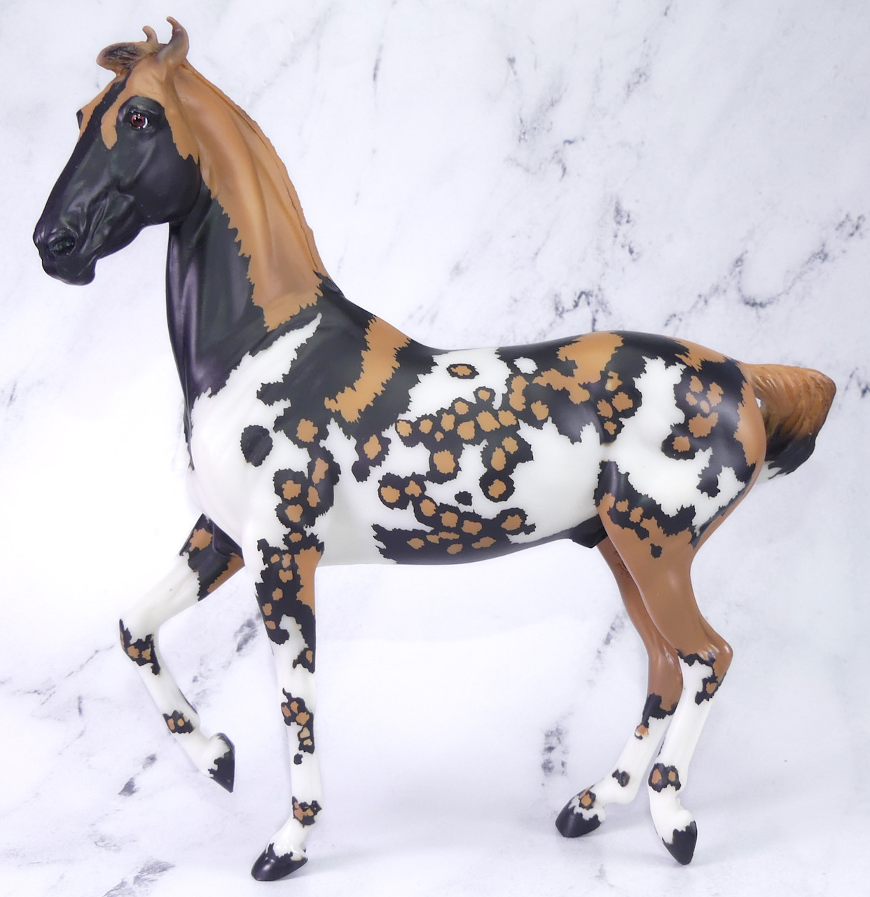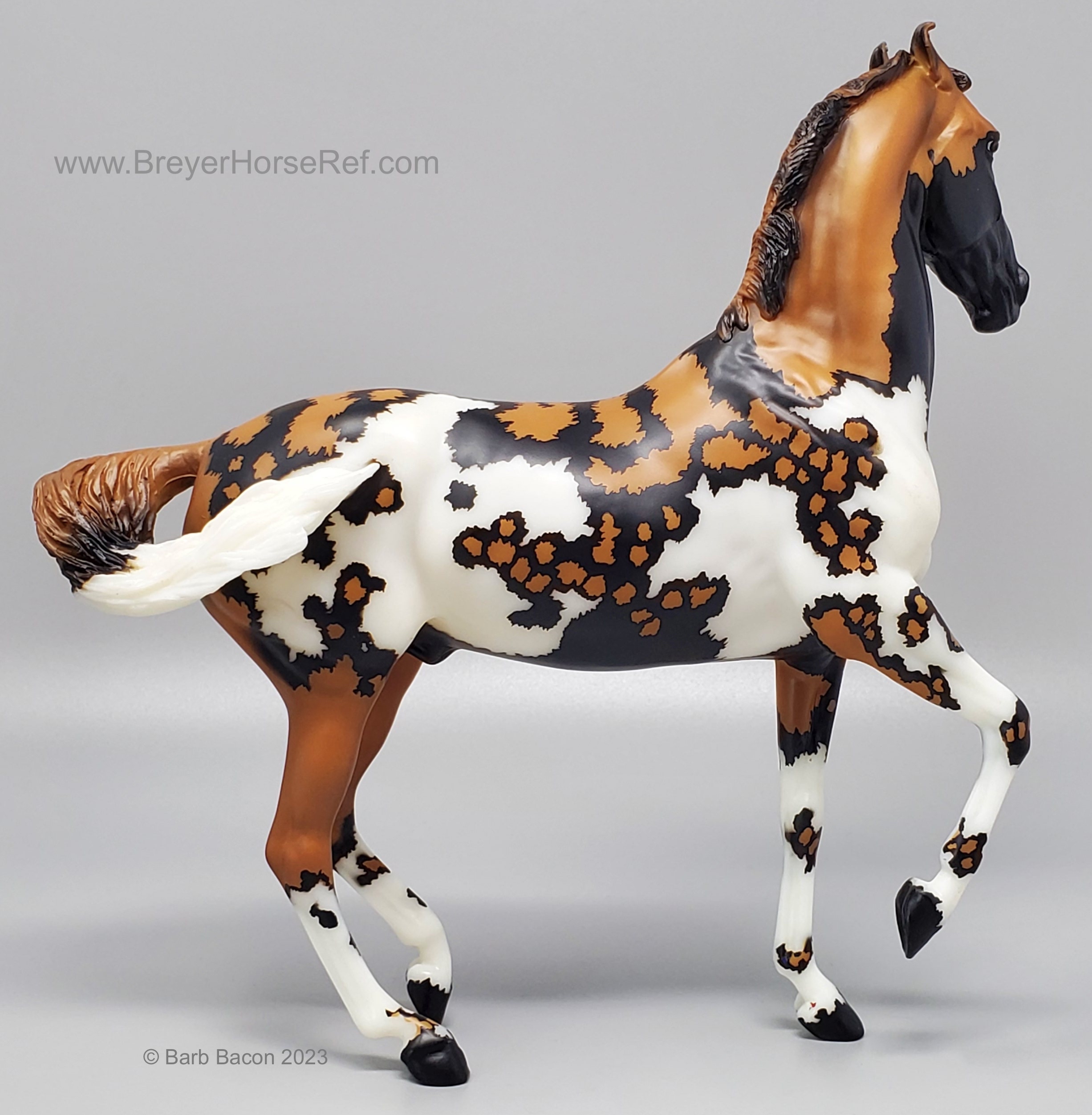 "Kalahari - The 5th Edition in the Breyer Wild Animal Series. The exotic and endangered African Wild Dog can be found in Africa’s grasslands, forests, and deserts - including the Kalahari! Extremely social, these beautiful pack animals are also known as “painted dogs” for their coat’s distinctive appearance. Each African Wild Dog’s coat is completely unique. Artist Lauren Hoeffer creatively reimagined the Marwari as an African Wild Dog. Kalahari sports mottled spotting along his body and legs, with a cape of lighter coloring draping his head and neck. Kalahari’s long legs and athletic appearance will serve him well, as African Wild Dogs can reach speeds of up to 44 mph! Kalahari has "Wild Animals Series, Limited Edition" on his belly. Limited to just 750 pieces and available exclusively to Collector Club members, Kalahari is priced at $195.00." www.breyerhorses.com.