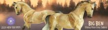 Big Ben (mold #483), sculpted by Kathleen Moody, is a favorite of many Breyer fans who grew up in the 1990s and 2000s. This fellow is a Big Ben lover’s dream come true! A fun experiment from the Breyer Paint Department, this model has a rosy-grey base color with sabino markings applied in a 90s-esque “splatter” style. He also features hand-painted bi-eyes and horseshoes, plus a high gloss finish. his piece of Breyer history is priced at $1500.00 and comes with a certificate of authenticity." www.breyerhorses.com. Released in 2023, but unknown paint date.