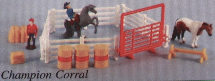 This model was released in the Series III Champion Corral Playset #3970. Set included a Grey Playful Arabian and Buckskin Paint Standing Quarter Horse, fencing, gate, 2 dolls, 3 barrels, feed bags, hay bales and jump. The Series III models had a very short sales run as there were production issues with Creata International.