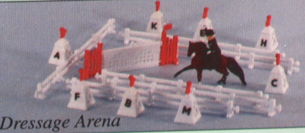 This model was released in the Series III #3970 Dressage Playset. Set included a dressage arena with jump and rider and a new color on the Trotting Morgan (not sure if this was a dark chestnut or bay). The Series III models had a very short sales run as there were production issues with Creata International.