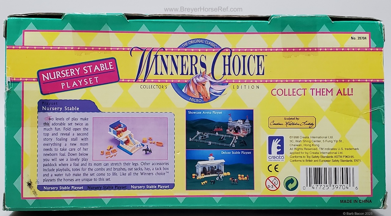This set was considered a Special Run or Collector's Edition, and produced by Creata International for Specialty Market stores (smaller retail stores). Breyer purchased the mold and accessories in 2004.