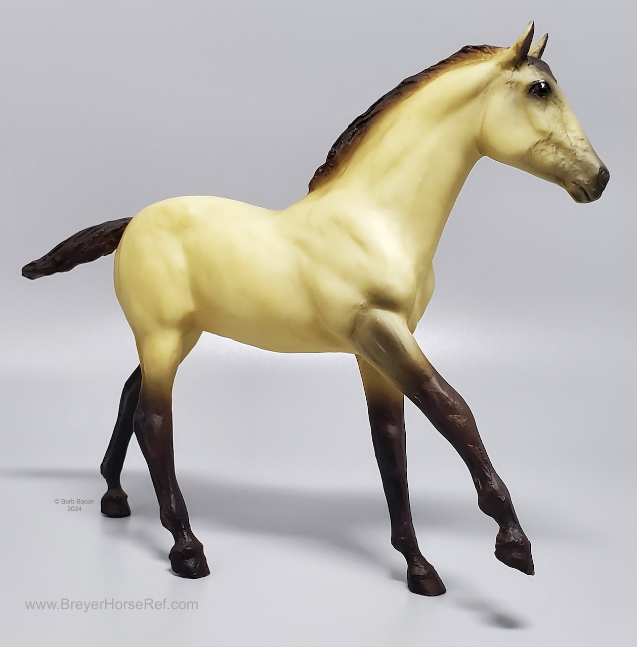 The set included a Black Blanket Appaloosa Running Foal, Palomino Pinto Suckling Foal, Action Stock Horse Foal, and a Proud Arabian Foal. The Stock Foal was advertised as a Buckskin, but could also be a Dun color. The Arabian Foal is a dark reddish color with black mane and tail, light brown legs and one stocking. It could be a dark red chestnut or baby bay color. JC Penney Exclusive.