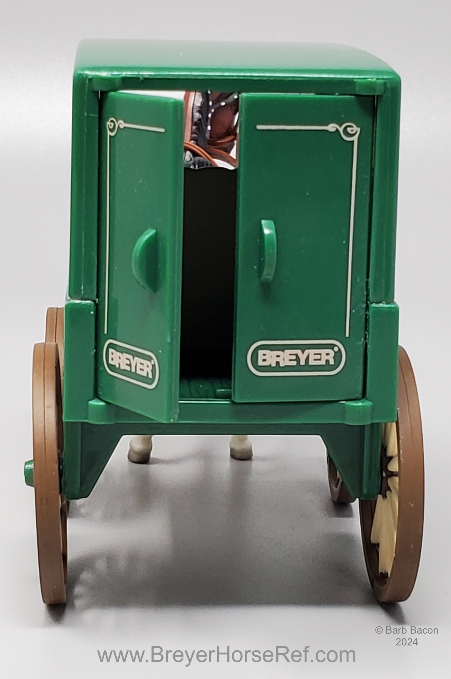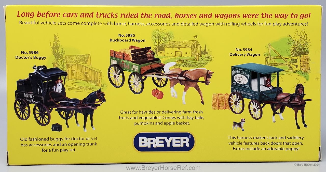 From 2003-2005, the Delivery Wagon Set #5984 included the Saddlebred, Sitting Dog, wagon and plastic tack. On the 2005 Retired List.
