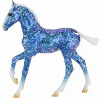 "In Spain’s Pyrenees Mountains, the names La Molina and Masella are synonymous with skiing and amazing winter scenery. La Molina has a stunning silver filigree coat, and her foal Masella sports blue filigree. Both are completed by a high gloss finish, which takes their coloring to the next level. Each has “Collector Club 2020” on their belly. Limited to just 450 pieces." www.breyerhorses.com.