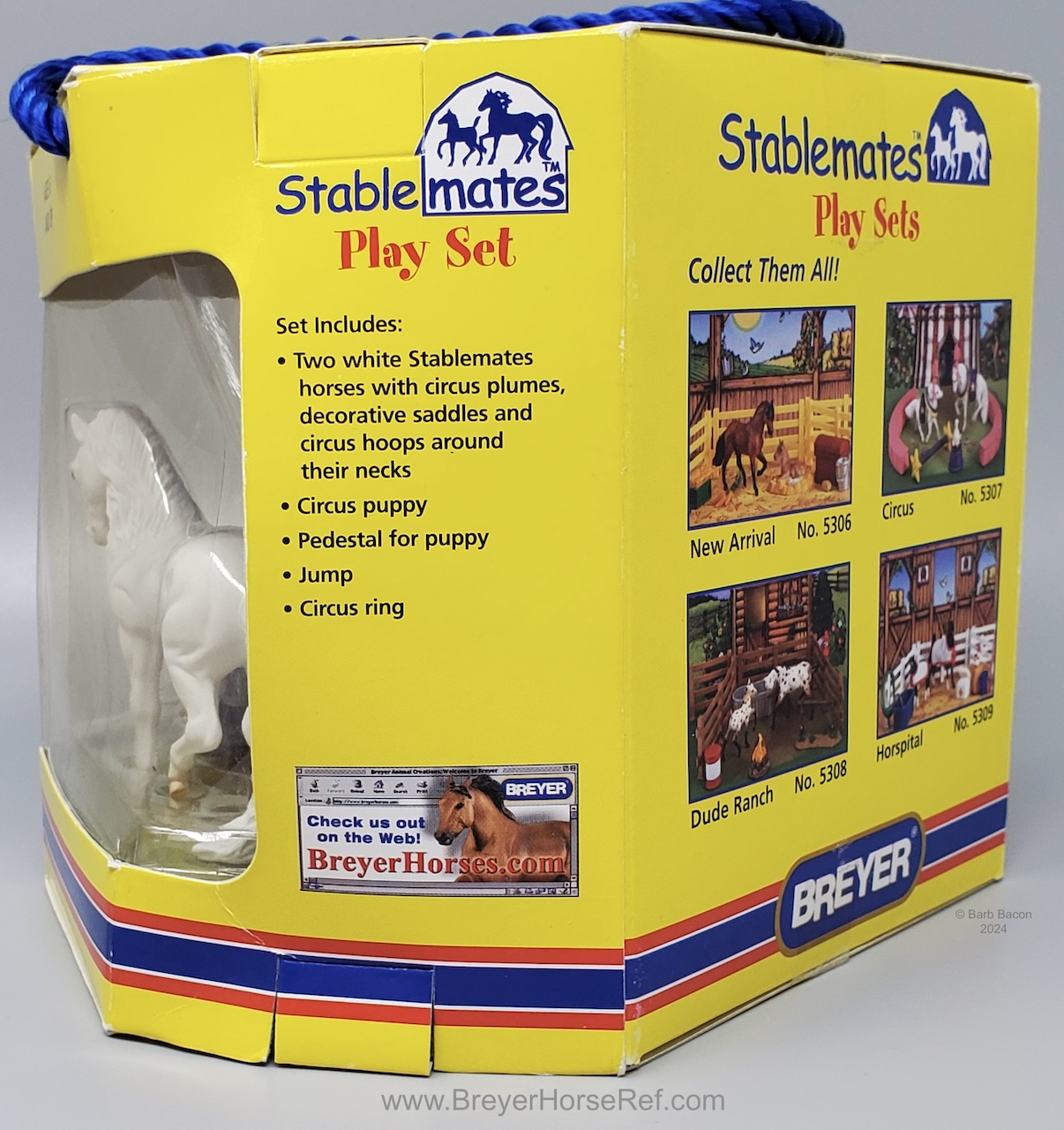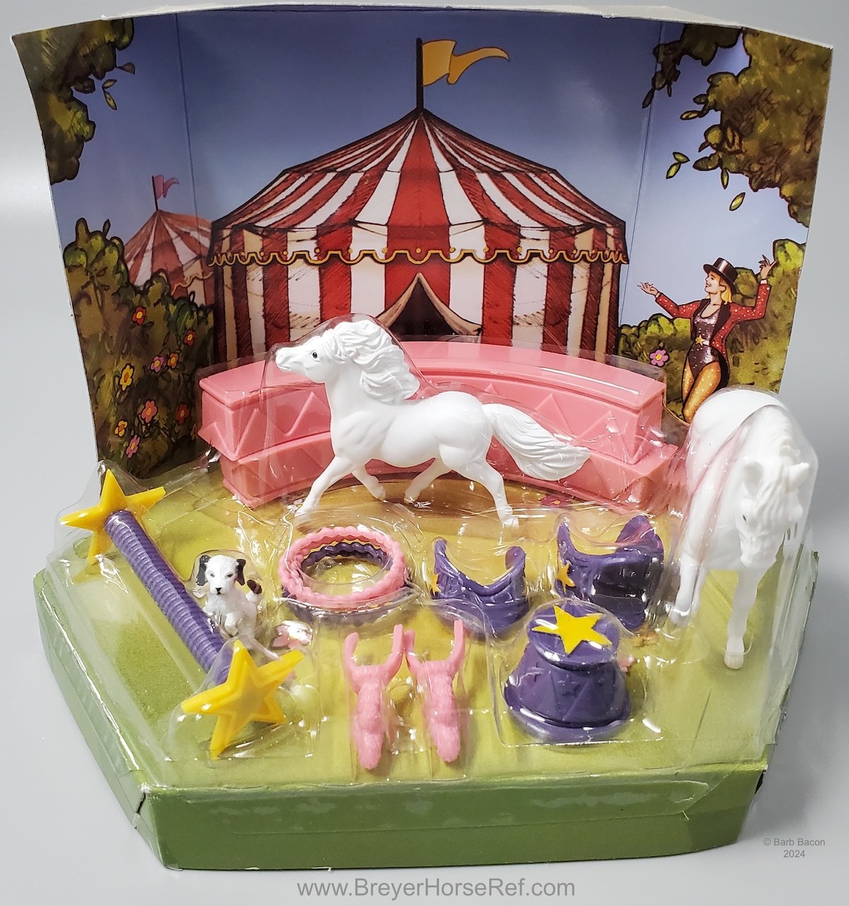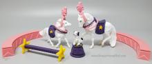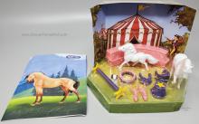 The Circus Play Set #5307 was released 2001-2004. Set included a White Andalusian, White Shetland Pony, Black and White Begging Dog, saddles and a variety of circus props. On the 2004 Retired List.