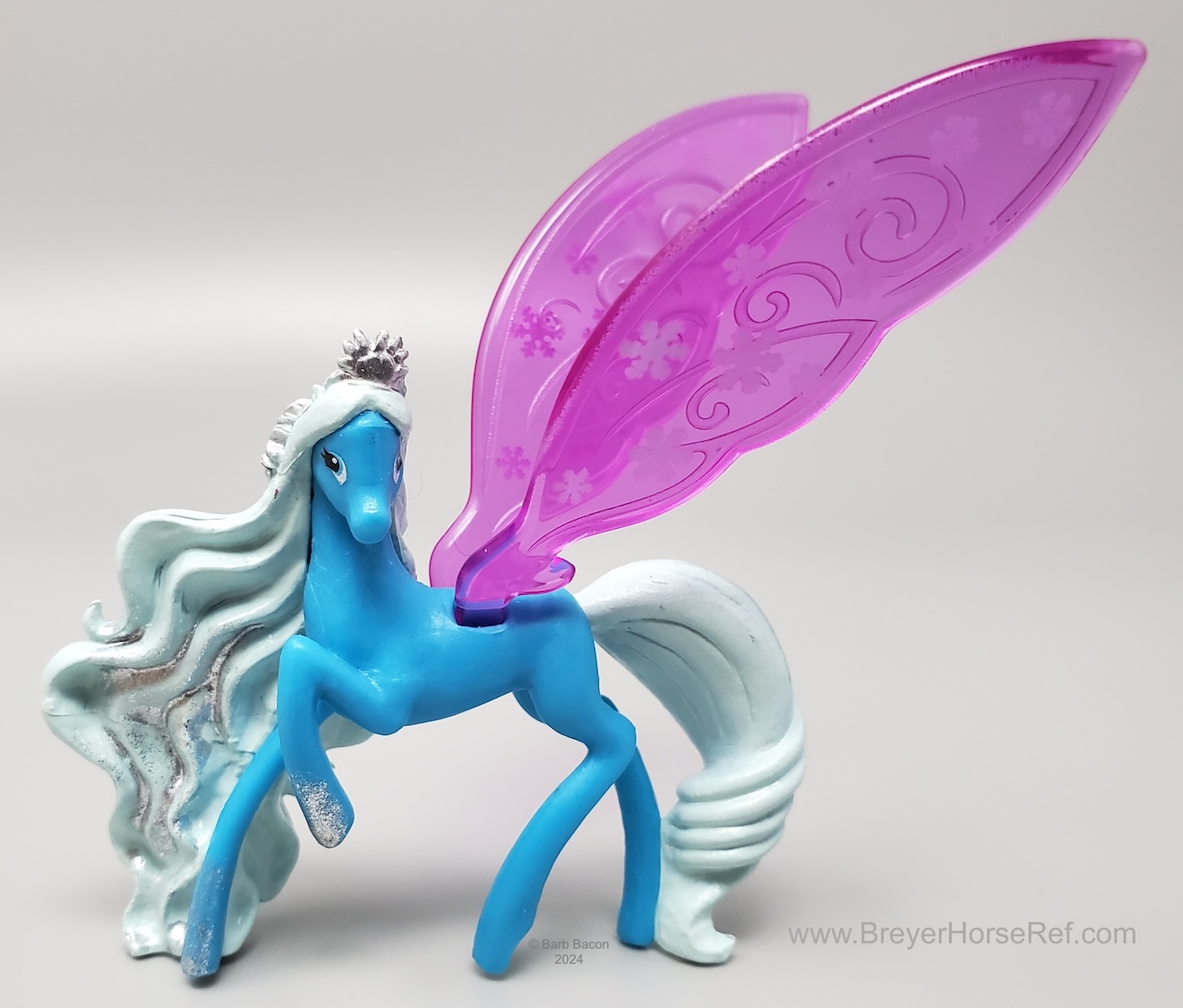 Surprise packages included a mini Wind Dancer, detachable wings and sticker. Same size and plastic as the Breyer Mini Whinnies (approximately 2.25"L x 1.65"W). On the 2018 Retired List.