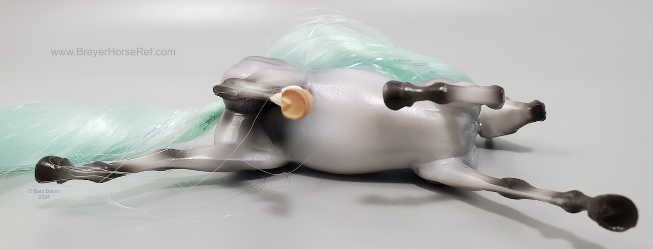 Sumatra matches the ocean with a silver blue color and sea-green wings and faux mane and tail. She likes to fly in the thunder and lightning that comes from the monsoons, and stars in the third book "The Horse Must Go On!".