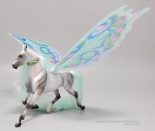 Brisa is coral pink with blonde faux hair mane and tail. She flys in warmer and tropical winds, and stars in the second book "Horse Happy".