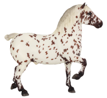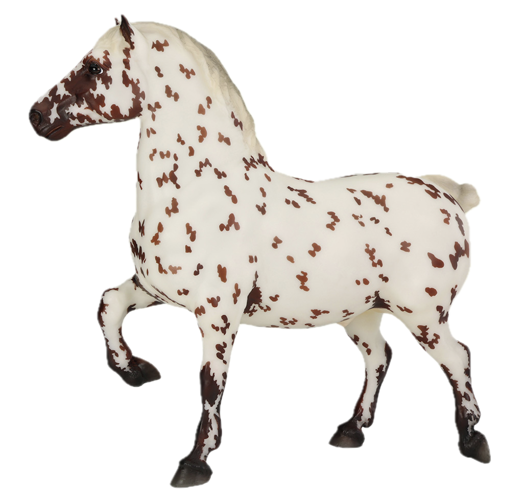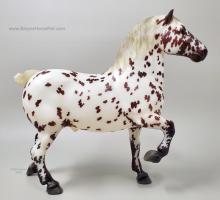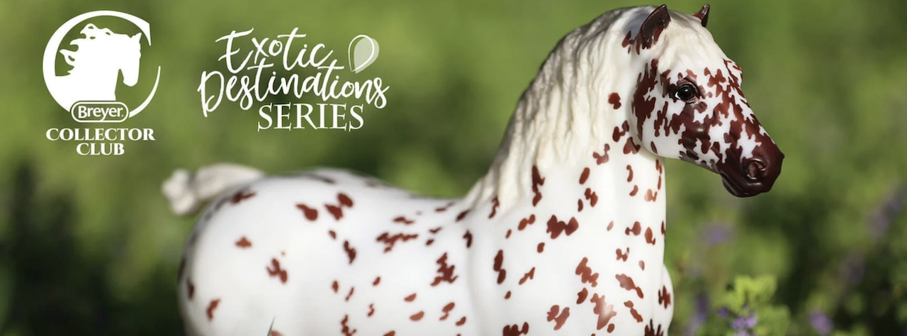 "The Final Release of the 2025 Exotic Destinations Series. Our last Exotic Destination of the year is Salzburg, Austria, where the Noriker breed was formed. Getting its name from the former Roman province Noricum, this moderately sized draft breed’s development fell to the archbishops of Salzburg until the state created their own stud farms in the 1800s. These biddable and strong horses found a place in ceremonies, but they truly thrived in agriculture. The Noriker’s use in the difficult terrain of the country’s alpine regions, and the needs of the people of the Middle Ages, saw these horses become heavier and more versatile over time. They not only worked the land, but they also served as mounts for knights and as carriage horses. While the breed typically displays solid dark coat colors, Norikers with spotted coats have long been prized. Artist Sommer Prosser designed Salzburg’s coat to exemplify the beautiful Noriker. He has the breed’s rare flashy bay leopard appaloosa coat and 'Salzburg 2025' on his belly in gold." www.breyerhorses.com