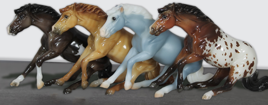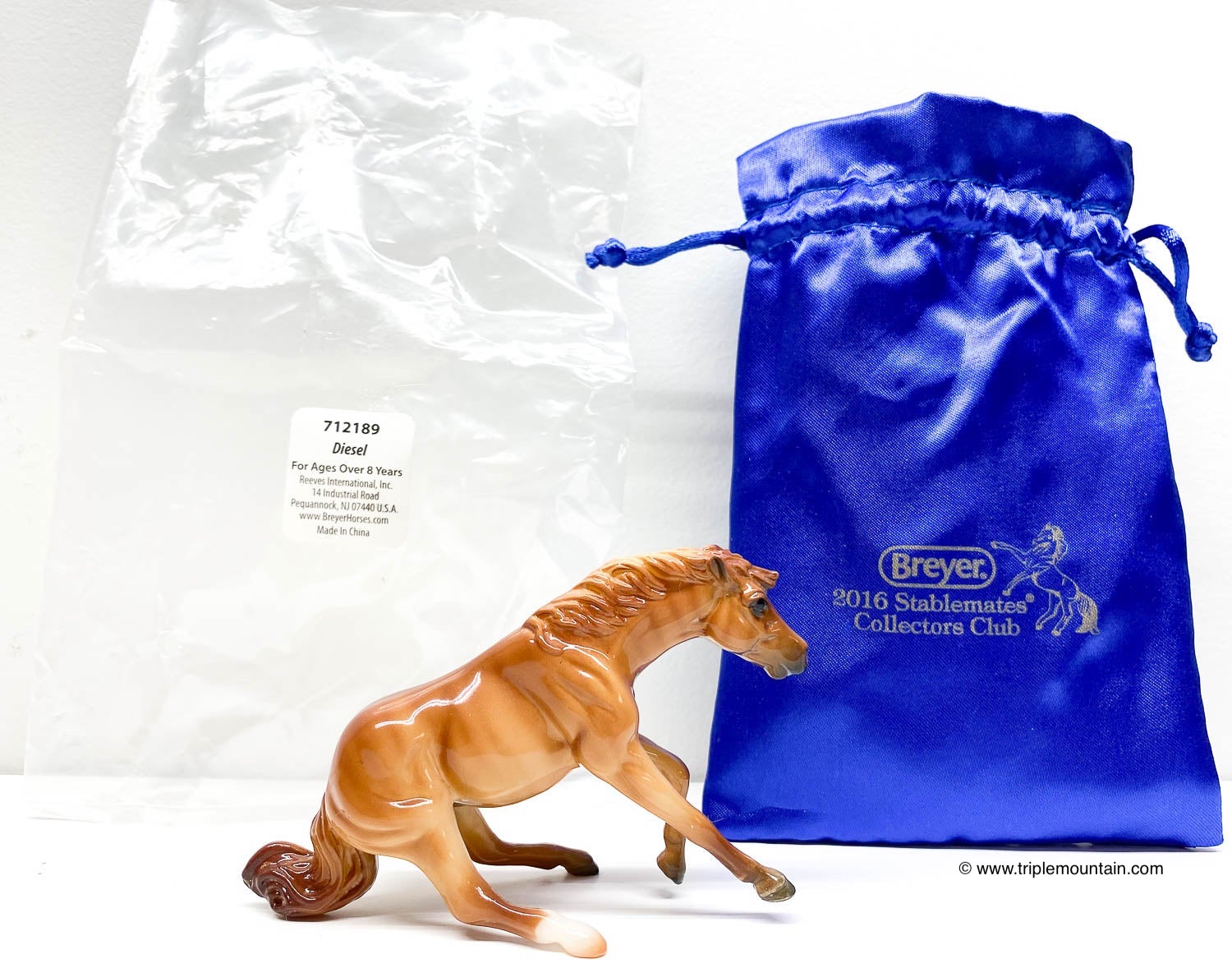 Diesel, Stablemates Collector’s Club. Included Glossy Bay Appaloosa, Glossy Brindle, Glossy Grullo Pinto or Decorator Wedgewood Blue. These models were made from the heavier Cellulose Acetate plastic.