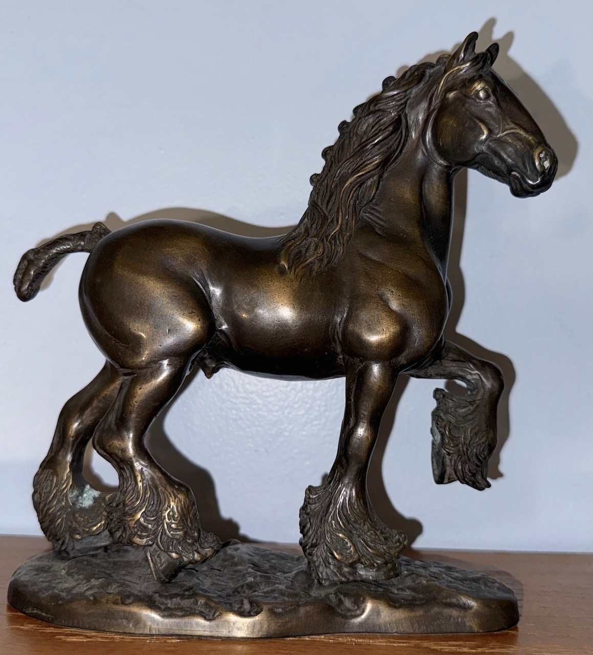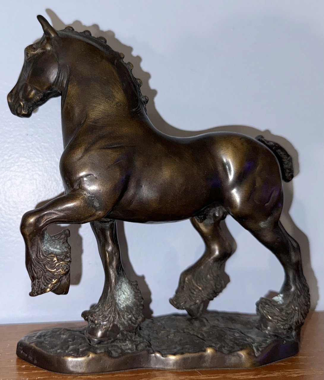 Per Identify Your Breyer: There were 3 color variations of this bronze mold: dark brown/black, white marble with a patina look, or a blue green color to look like verdigris or patina, and in 2009, an estimated 10 of each color were released at BreyerFest and came with a wood base with a brass plate that read 'Gentle Giant'. Unknown the final amount of bronze models produced.
