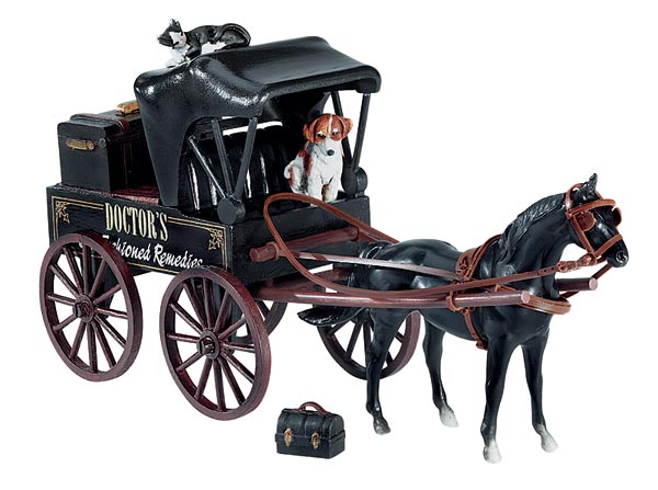 The Doctor's Buggy Set #5986 was released 2003-2005. Included a black Silky Sullivan, Sleeping Cat, Sitting Dog, buggy, trunk and medical bag. Model looks the same as #5177, so this could be from overstock.
