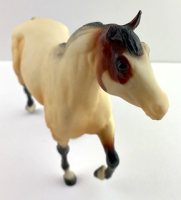 In 2014, it appears this model was re-released as a Warehouse Model #430003 called Quarter Horse Bay Roan. The Warehouse model has crisper masking on the face, more blended tail colors, darker or black hooves and a VIN Hoof Stamp. The VIN number and Copyright date on the box is 2013, but model was available for sale in 2014. See separate record.