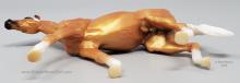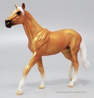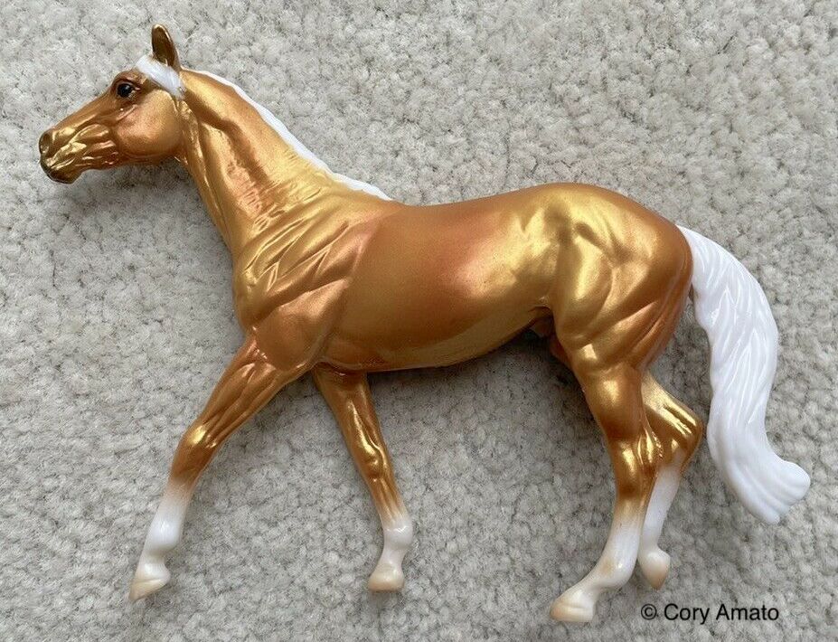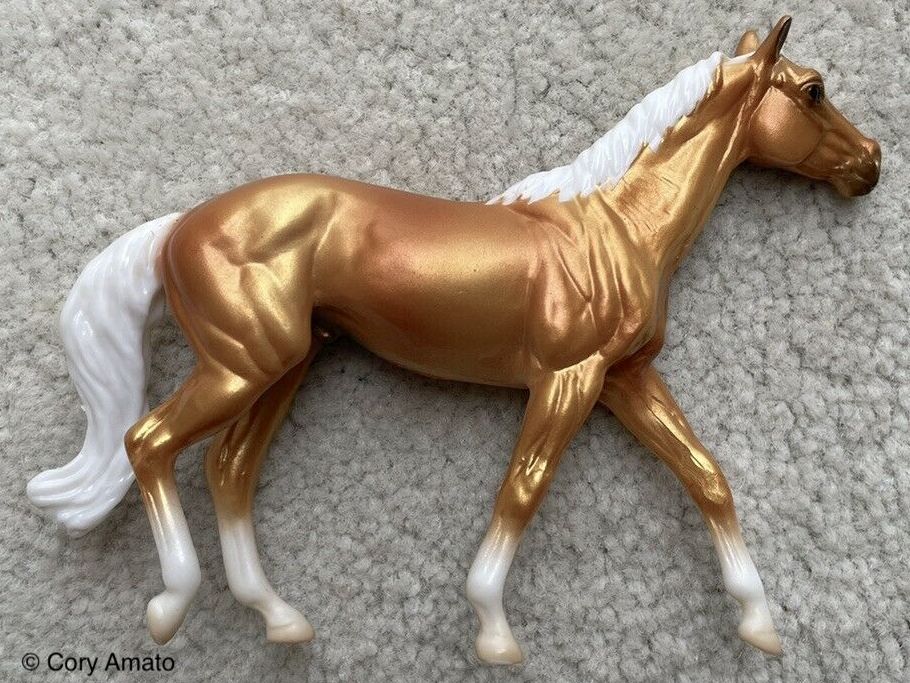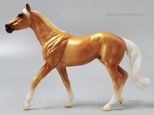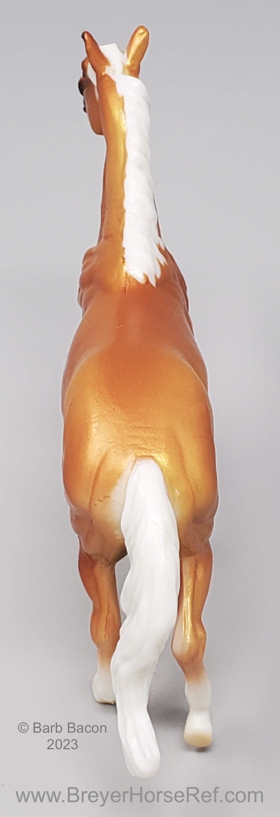 "What surprise will you find when you open up the stable door? Each barn-style package is hiding a Stablemates horse and foal. This will be a random ship of one of four sets." www.breyerhorses.com. In a set with a golden palomino Walking TB and a bay Scrambling Foal. Stable Surprise Set #6049 was only available in 2020 and on the 2020 Retired List.