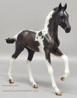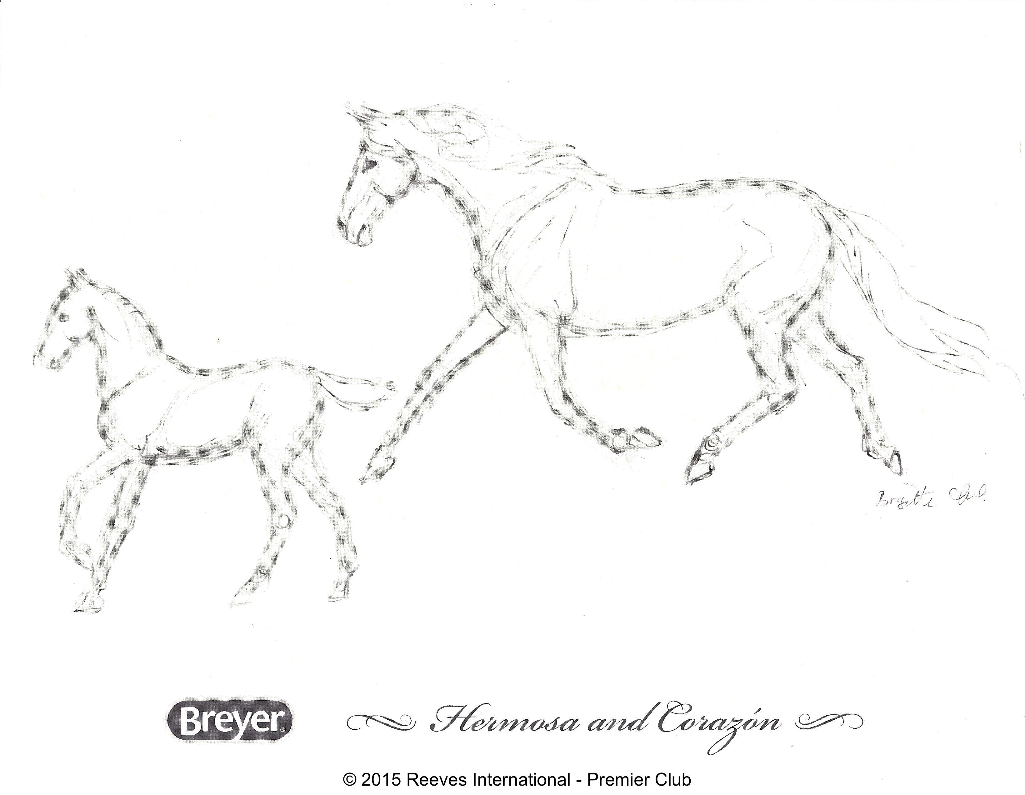 Black Tobiano with matching mare Hermosa. Came with an Artist Sketch and COA. The first model of this production run was attached to a base with a brass plate with the model's name and year released.