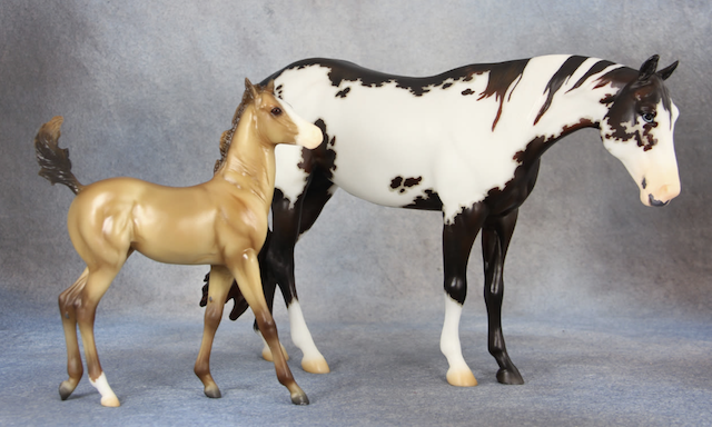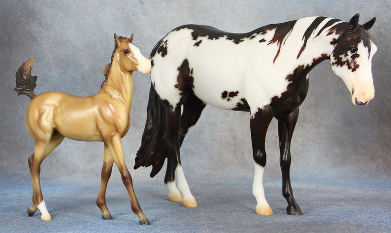 Released in a set with a Sun-bleached Bay Frame Overo Standing Quarter Horse Mare (Firefly) and a Baby Buckskin Walking Quarter Horse Foal (Hawkeye).