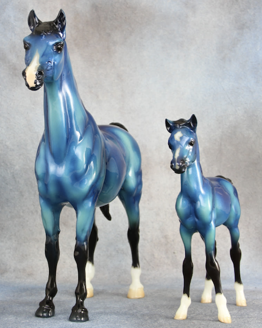In-Between Mare & Proud Arabian Foal - Glossy Metallic Blue