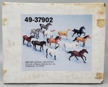Released through Sears in 1989 as the Stablemate Assortment I (or 12-Piece Stablemate Set) #495600 (Sears #49-37902). This set included an alabaster Arabian Mare, steel grey Arabian Stallion, red roan Citation, dapple grey Draft Horse, palomino Morgan Mare, chestnut/red dun Morgan Stallion, red bay Native Dancer, black Saddlebred, red chestnut Seabiscuit, buckskin Silky Sullivan, blue roan Swaps and a dark/medium bay Thoroughbred Mare. These models were made from the heavier Cellulose Acetate plastic. 4500 of these sets were made.