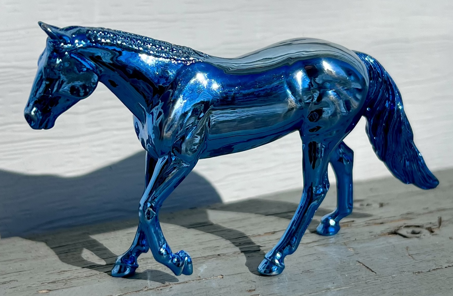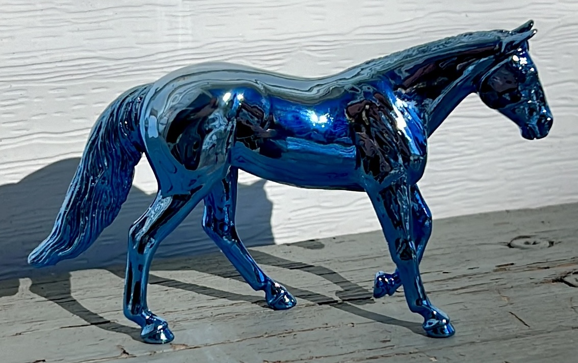 Shiny metallic blue color on the Loping Quarter Horse. Ultra rare chase. Unknown how many were made.