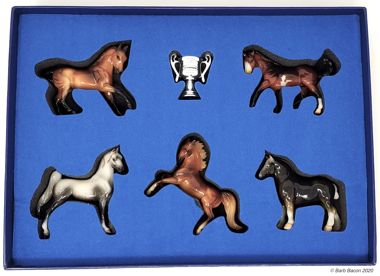 Glossy Chestnut. In a set with American Saddlebred, Appaloosa, Rearing Arabian, Draft Horse and Warmblood. Came with a little plastic trophy. First in the Silver Cup Series; however, only the First and Second sets were released. QVC Exclusive.