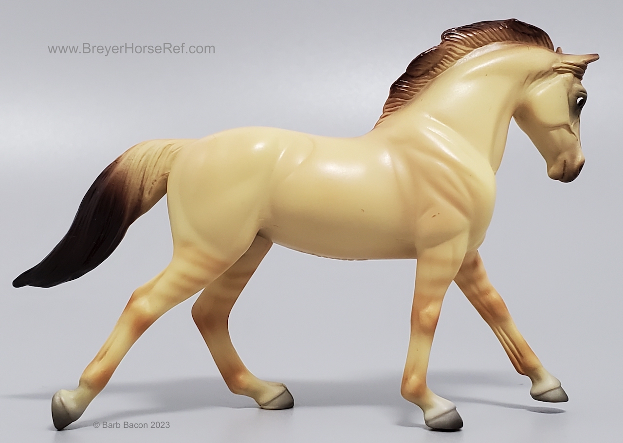 Red Dun Warmblood. From 2015-2017 released as a single model #6026, and in the 8 Piece Set #5900/5901 that included the Warmblood, Arabian, Highland Pony, American Saddlebred, Mustang, Appaloosa Sport Horse, Tennessee Walking Horse, and Andalusian.