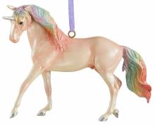"The enchanting unicorn is an enduring symbol of goodness and truth. With his pearly pink coat and mane awash in a soft rainbow of glittering colors, Majesty brings magic and beauty to the holiday season! Majesty is equally at home on the mantel or on the Christmas tree." www.breyerhorses.com. 2nd in the Unicorn Ornament Series.