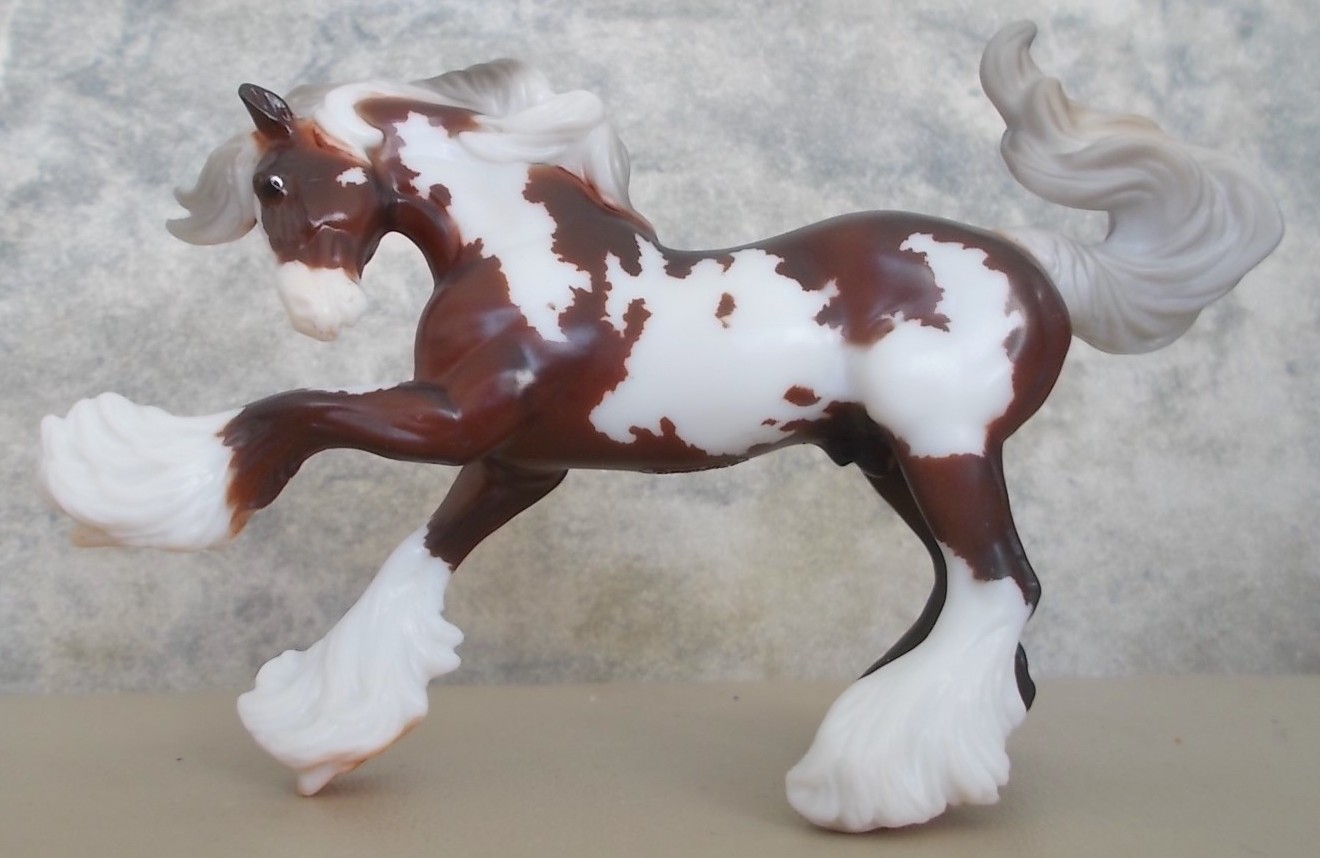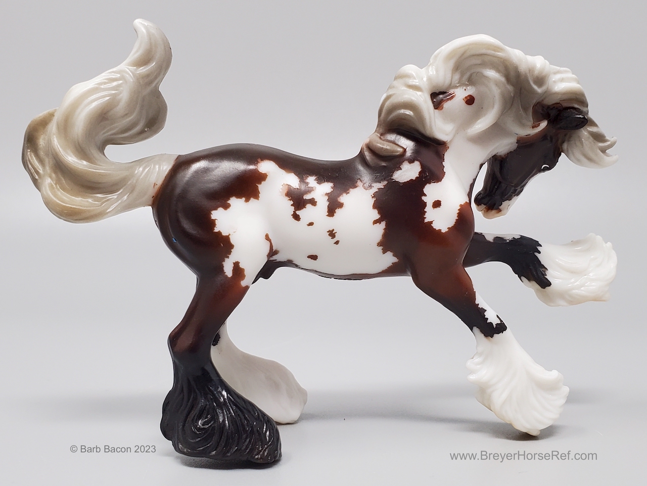 Silver Bay Overo. This is a mini version of the Cantering Warmblood model True North.