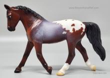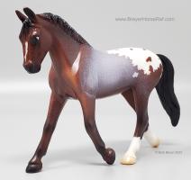 Landau (mold #5716) has been inspired by Minnie Pearl, the 2013 Open Model Horse Show Overall Grand Prize model and has been done in a lovely bay extended blanket appaloosa on Jane Lunger’s pocket-sized Trotting Warmblood. A Landau is a luxury four-wheeled carriage that dates from the 18th century and has a convertible top." www.breyerhorses.com.