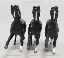 This model has the same color and pattern as #300133 Day at the Races, #97260 Midnight and #700700 Advent Calendar. The Advent Calendar model has white plastic markings; whereas the others have painted white markings. Hoof colors vary slightly between each model. Individual records created for each of these models as they all have multiple accessories.