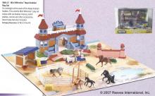 Set #300112 Royal Arabian Play Set from 2006-2007, included the Cantering Morgan, Playful Arabian, Prancing Foal, Romping Foal, Trotting Morgan, Walking Arabian, Castle, Stall, Corral with Gate, 3 Jumps, Water Trough, Oat Bag, Bucket, Trophy Stand, Gold and Silver Trophies, Hay Bale and Play Mat.