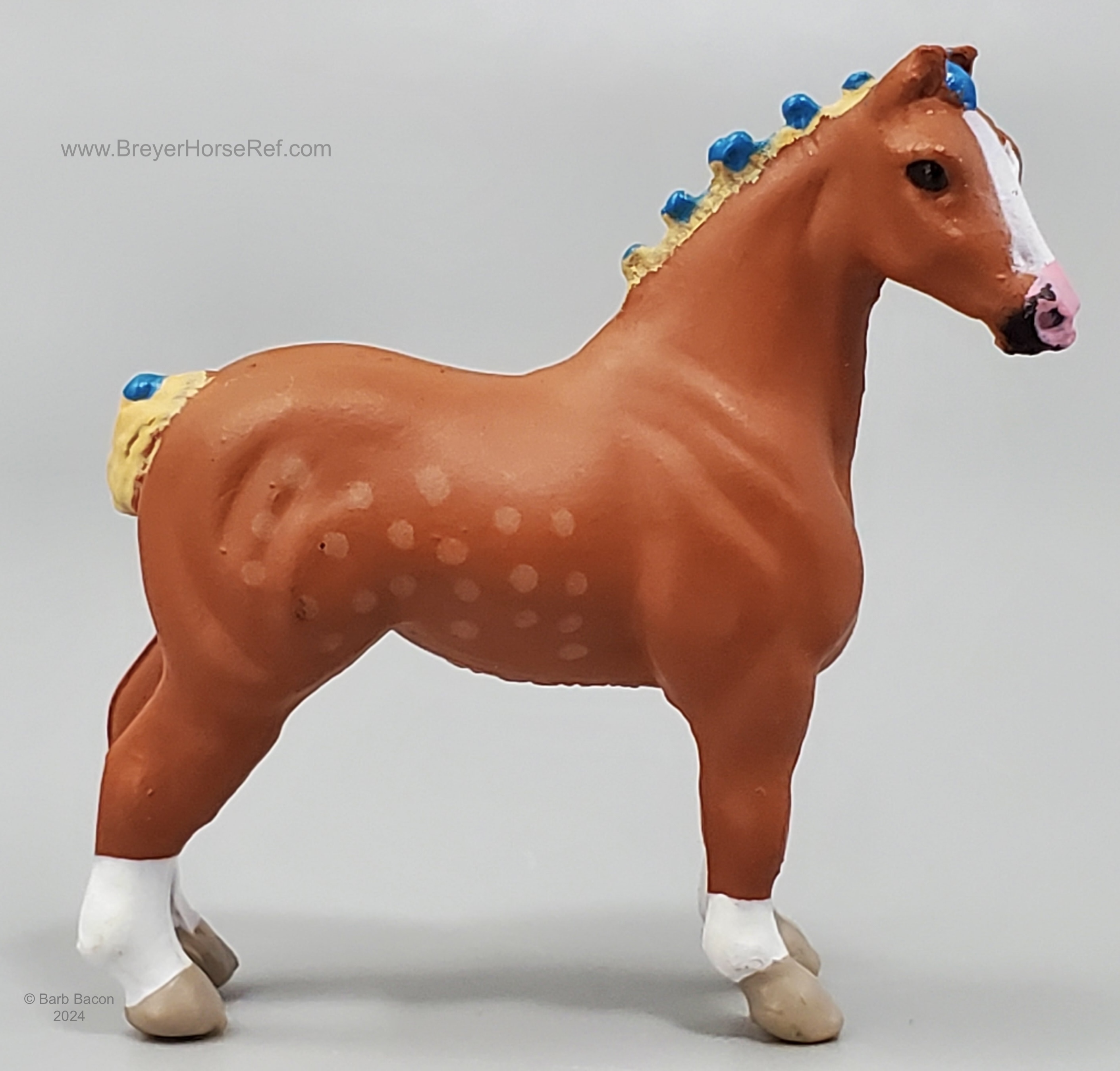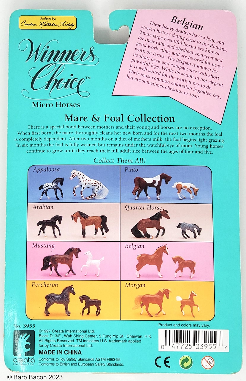 This model was released in the Series 2 Mare & Foal Collection - Belgian Set #3955, Winners Choice Micro Horses by Creata International in 1997. Breyer bought this mold in 2004.