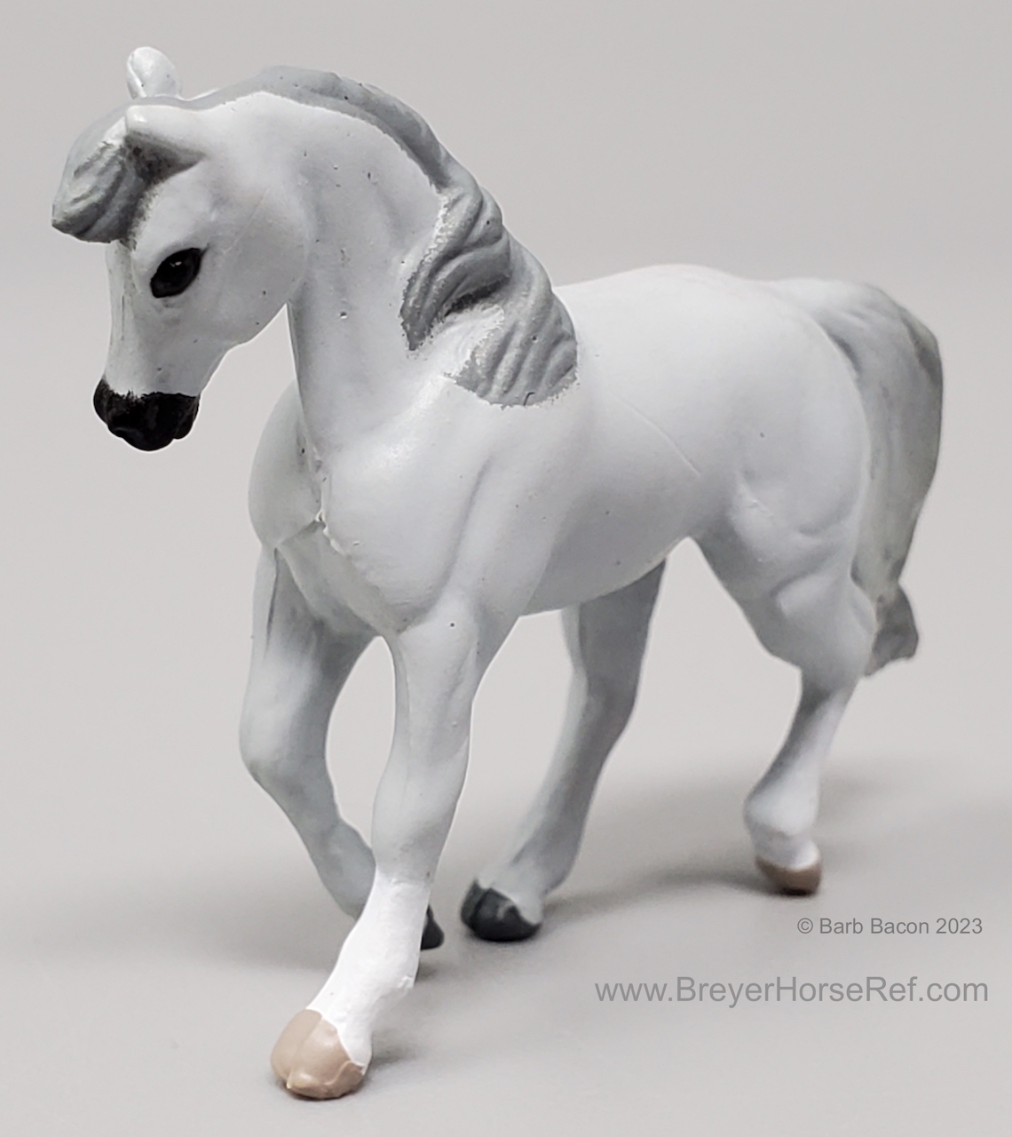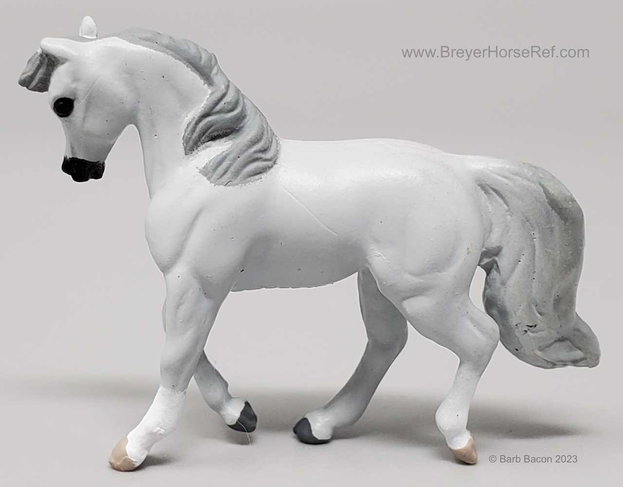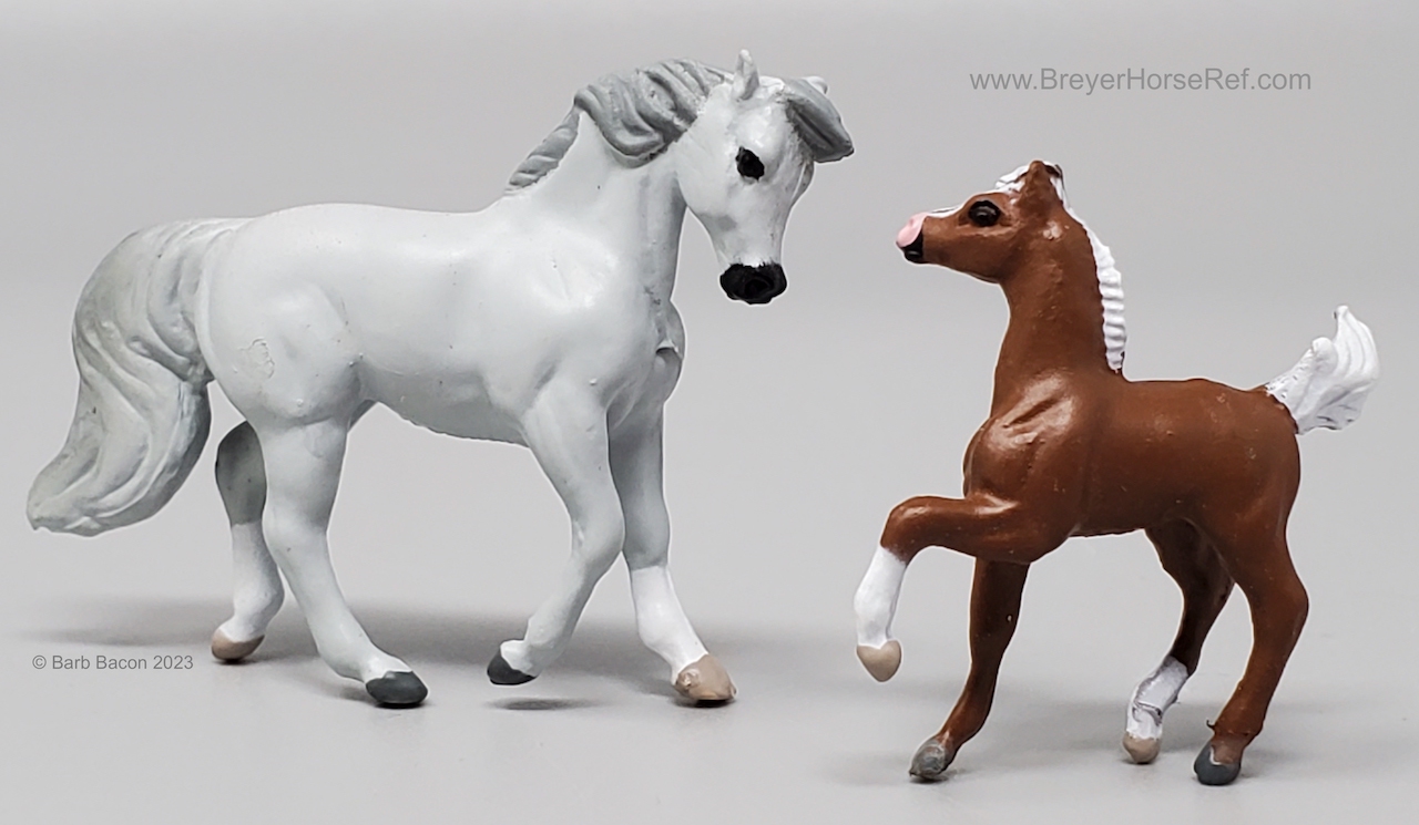 In 1998, this model was released in the Mare & Foal Series 2 - Morgan #3955. Set included a Light Grey Cantering Morgan and Chestnut or Palomino Prancing Foal. This set was considered a Special Run or Collector's Edition, and produced by Creata International for Specialty Market stores (smaller retail stores). This set has the same pattern, but different color, as the previous Mare & Foal set.