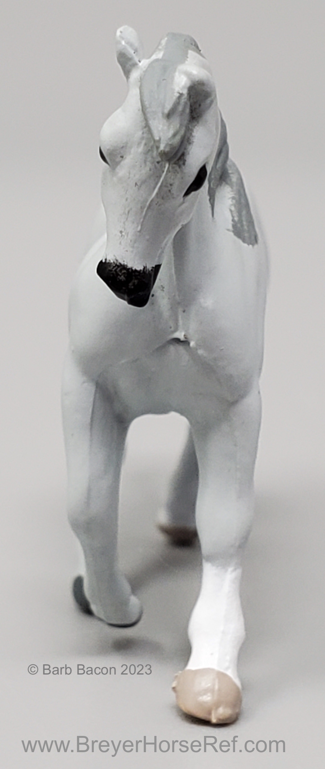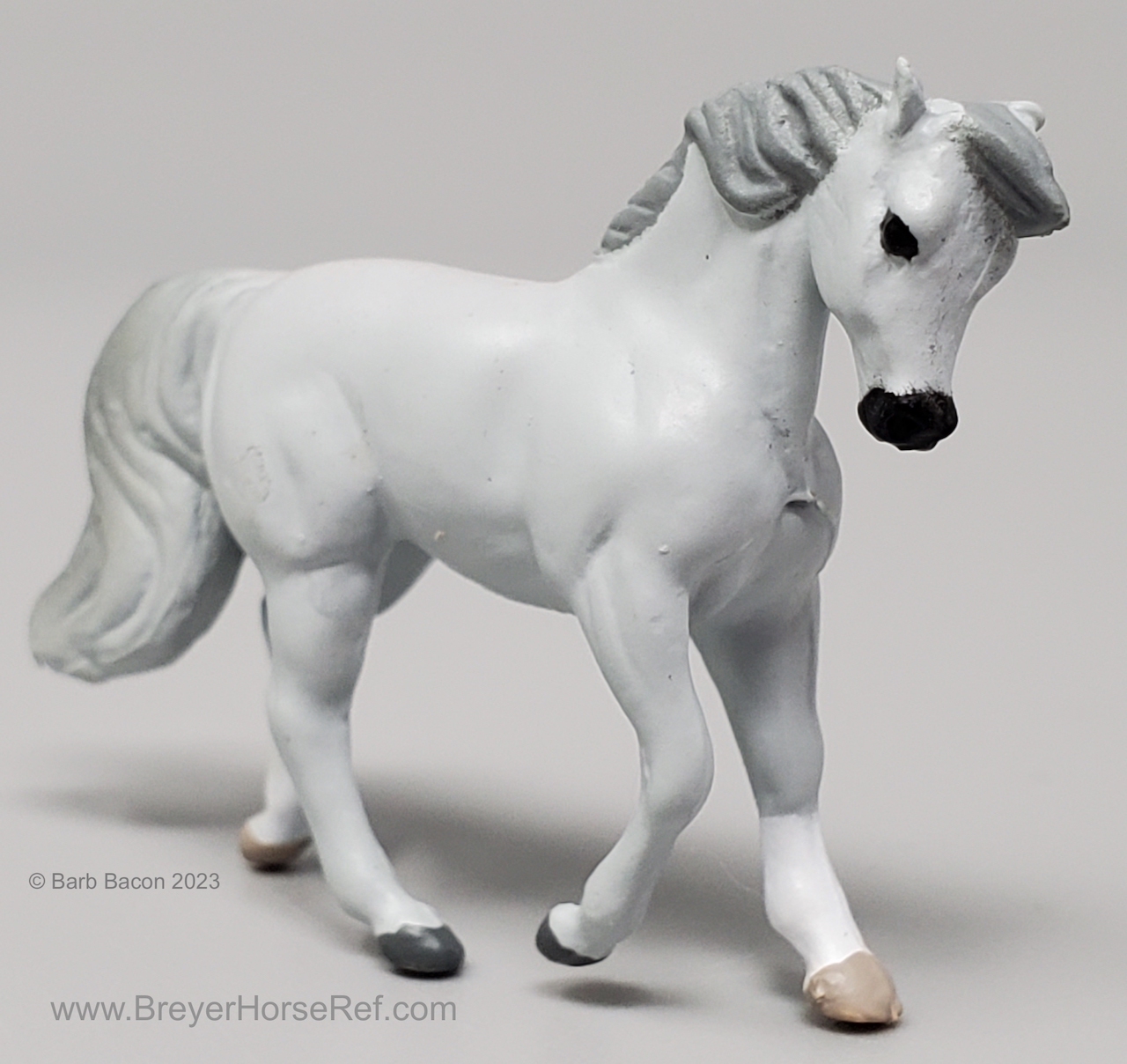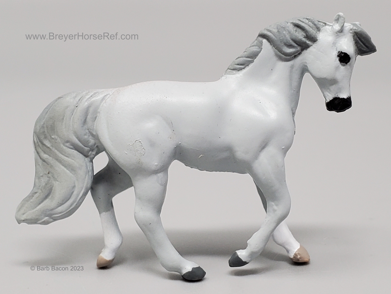 In 1998, this model was released in the Mare & Foal Series 2 - Morgan #3955. Set included a Light Grey Cantering Morgan and Chestnut or Palomino Prancing Foal. This set was considered a Special Run or Collector's Edition, and produced by Creata International for Specialty Market stores (smaller retail stores). This set has the same pattern, but different color, as the previous Mare & Foal set.