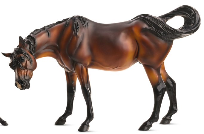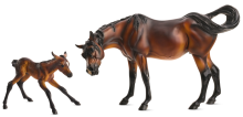 Breyer Flagship Retailer Exclusive. "Mariposa and Flor (#760251) - This heartwarming set of bay Arabians includes a mare and her newborn colt, finding his footing for the very first time." www.breyerhorses.com.