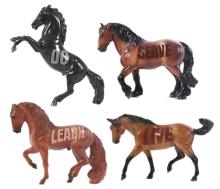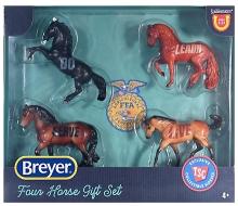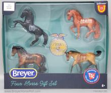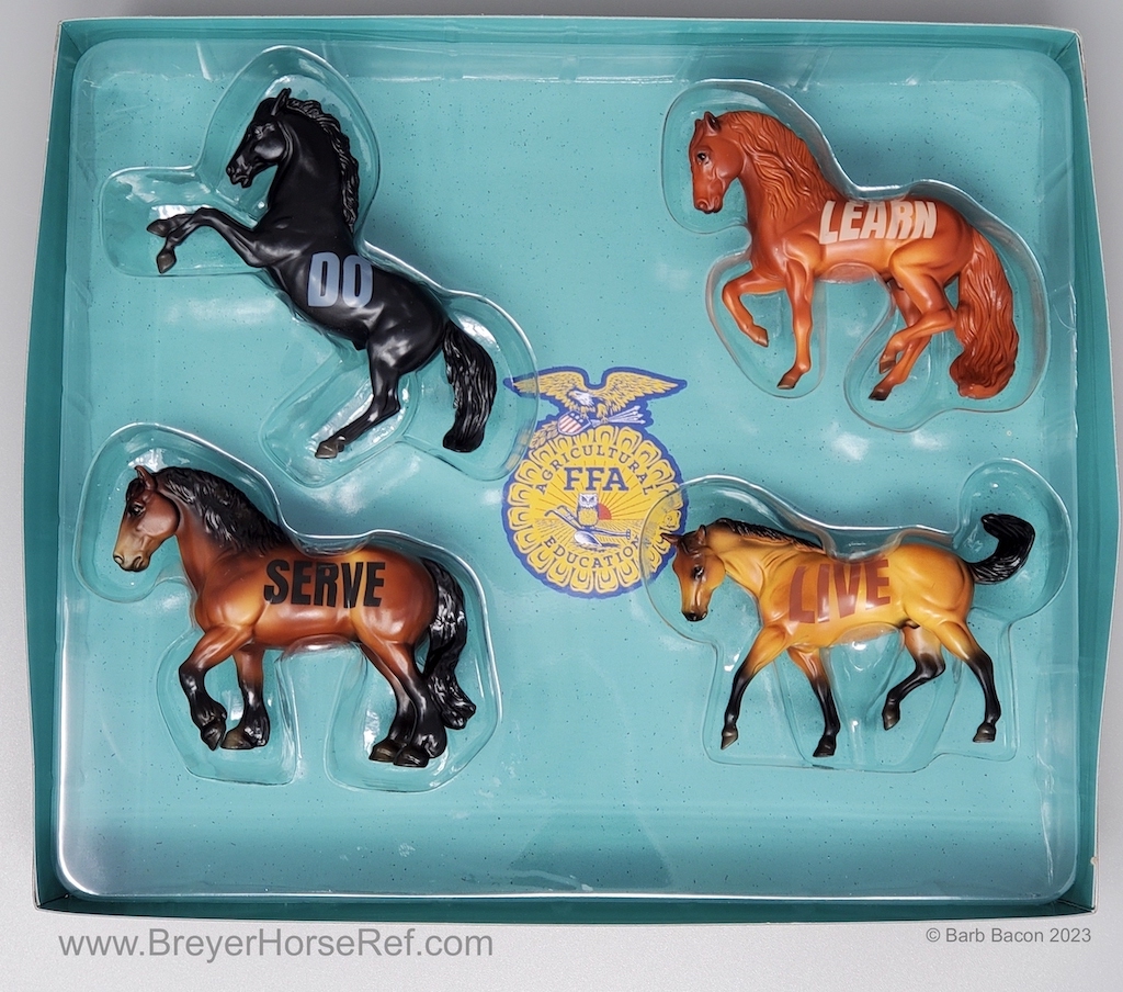 Tractor Supply Co Exclusive. Set includes a black Fighting Stallion, chestnut Andalusian, buckskin on the Appaloosa mold, and a bay Clydesdale Stallion. This set is inspired by the FFA twelve-word motto, Learning to Do, Doing to Learn, Earning to Live and Living to Serve.