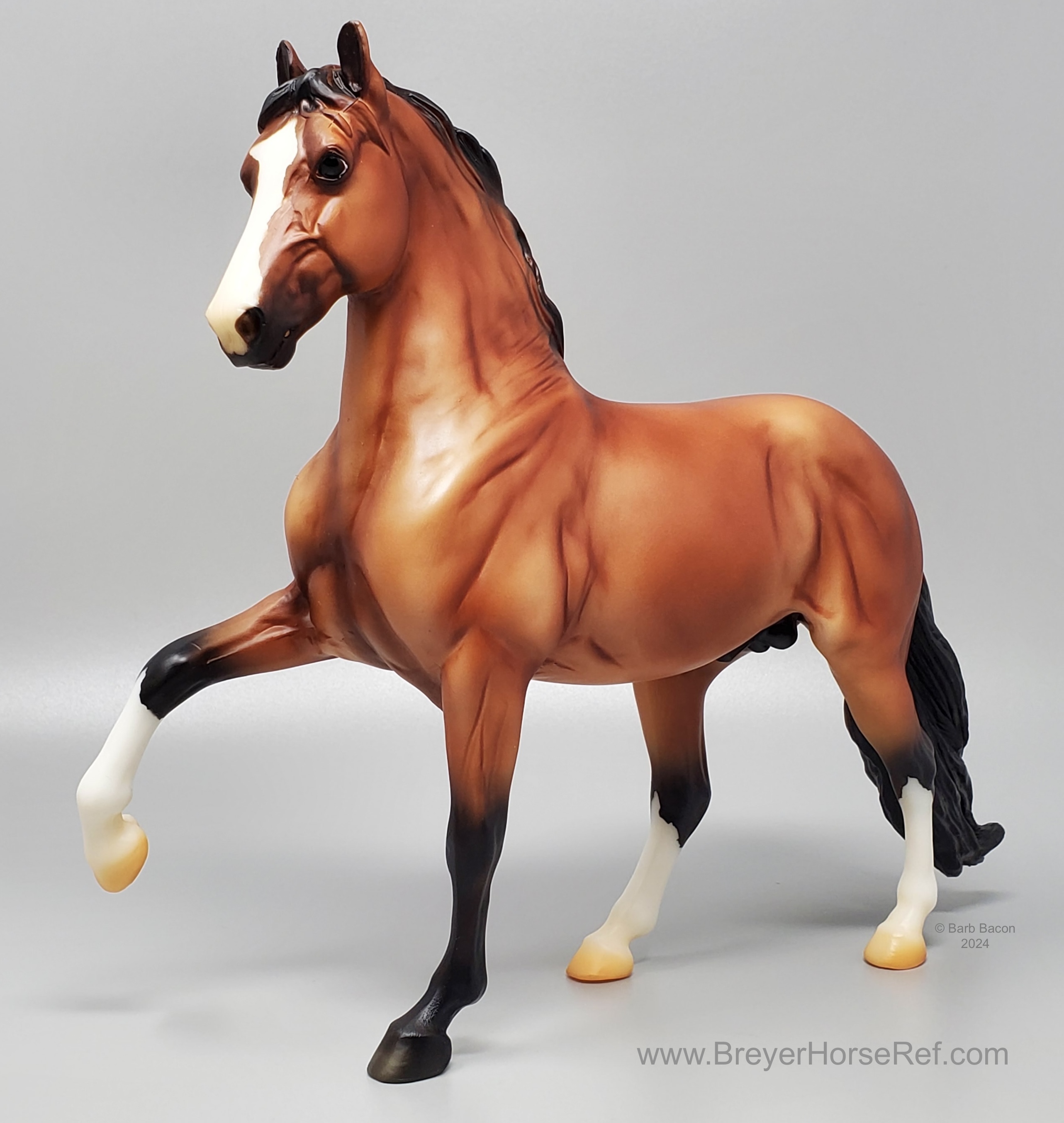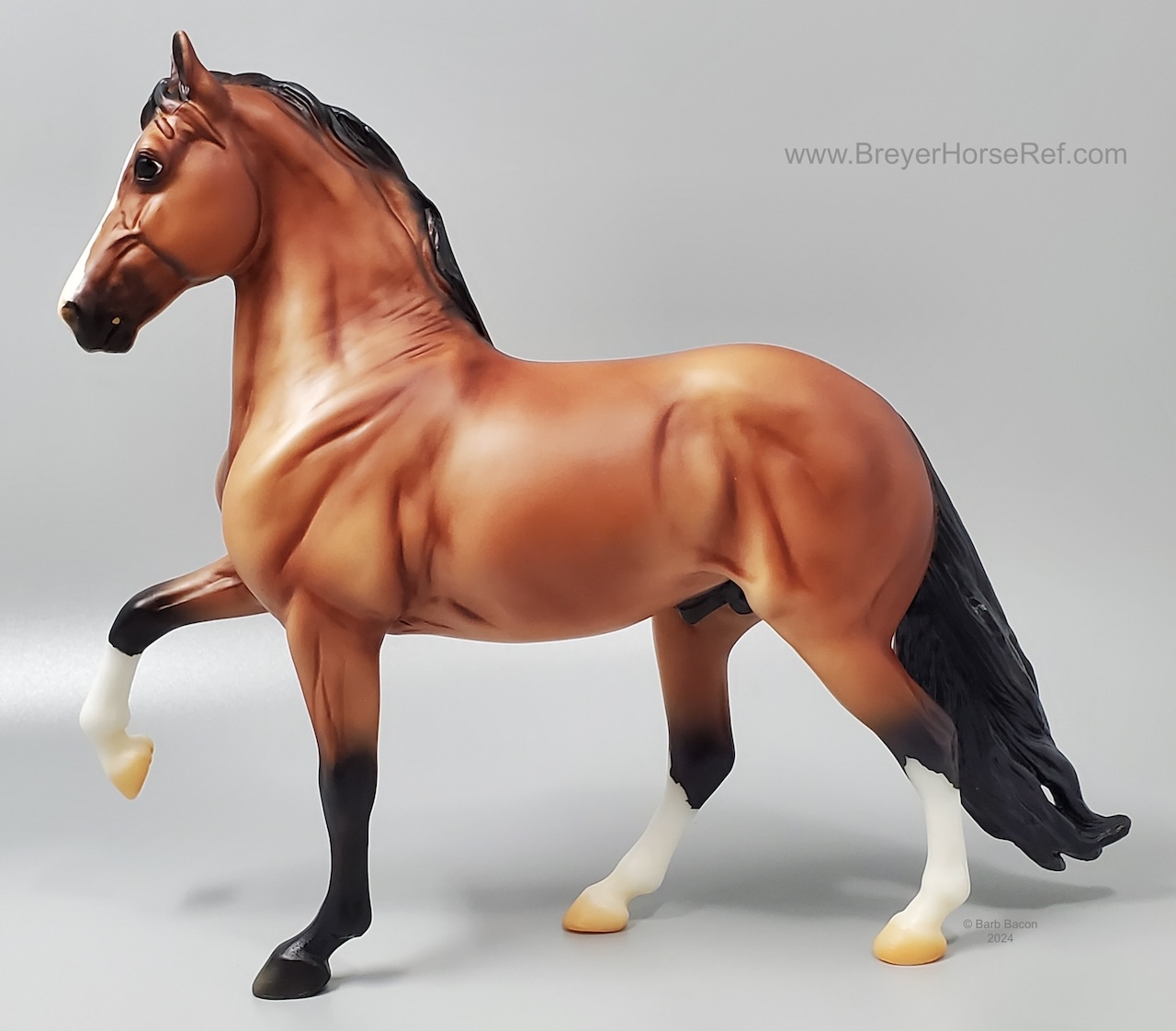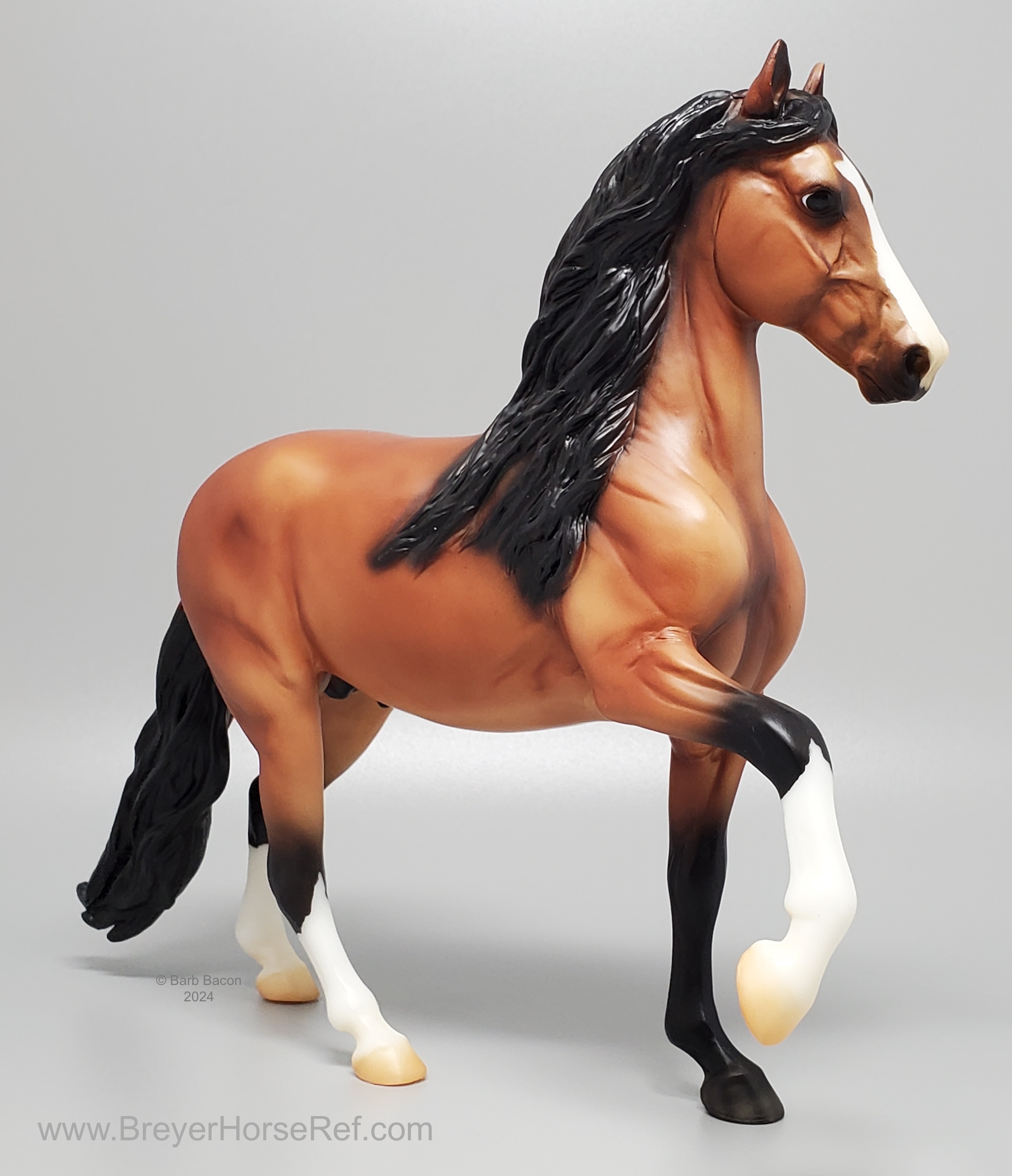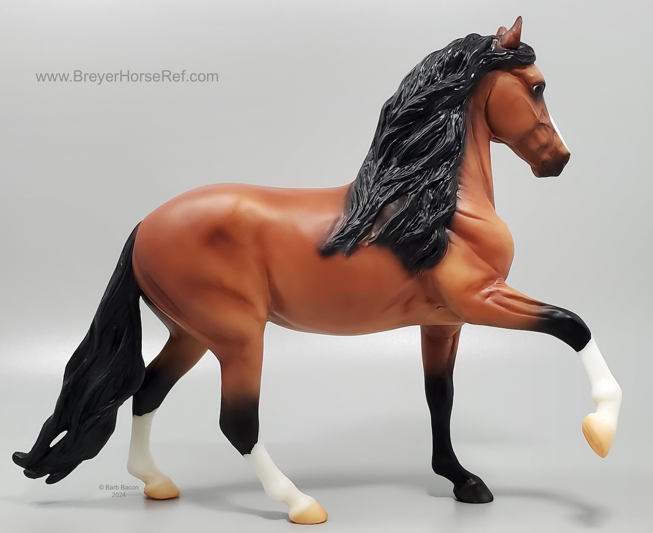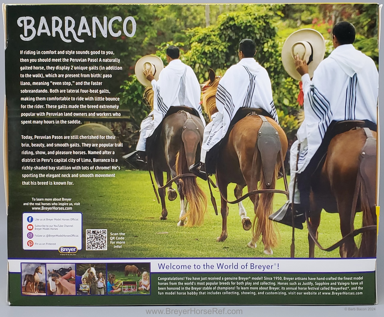 Today, Peruvian Pasos are still cherished for their brio, beauty, and smooth gaits. They are popular trail riding, show, and pleasure horses. Named after a district in Peru’s capital city of Lima, Barranco is a richly-shaded bay stallion with lots of chrome! He’s sporting the elegant neck and smooth movement that his breed is known for." www.breyerhorses.com. Brick and Mortar Store Special. Limited to 3000 models.