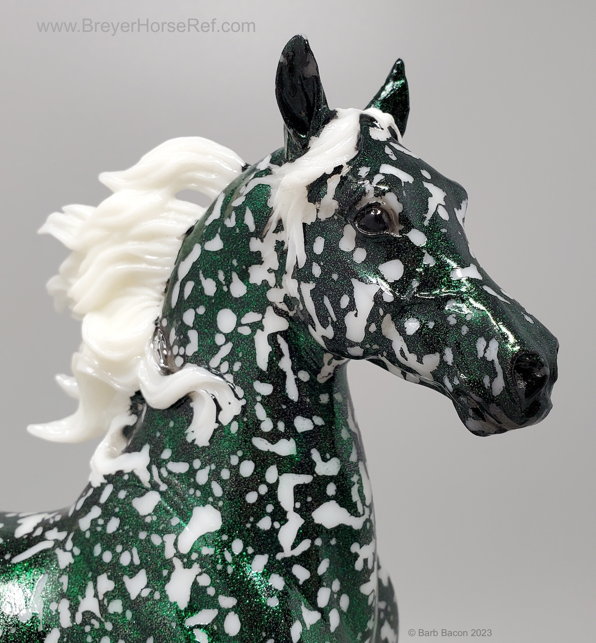 "Merry Christmas from Breyer! On December 19th we released Wassail, our 2023 Christmas Surprise model. For this release, Huckleberry Bey was dressed up in five festive colors, all with white manes, tails and stockings and a gloss finish:
