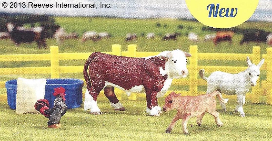 Ranch Friends Set #5366 released 2013-2014. Set included a Donkey, Bull, Rooster, Calf, 4 Pieces of Fence, Water Trough, and Oat Bag. On the 2014 Retired List, but still shown in the 2014/2015 catalog. These animals are made of a heavier plastic than the typical ABS Stablemate plastic.