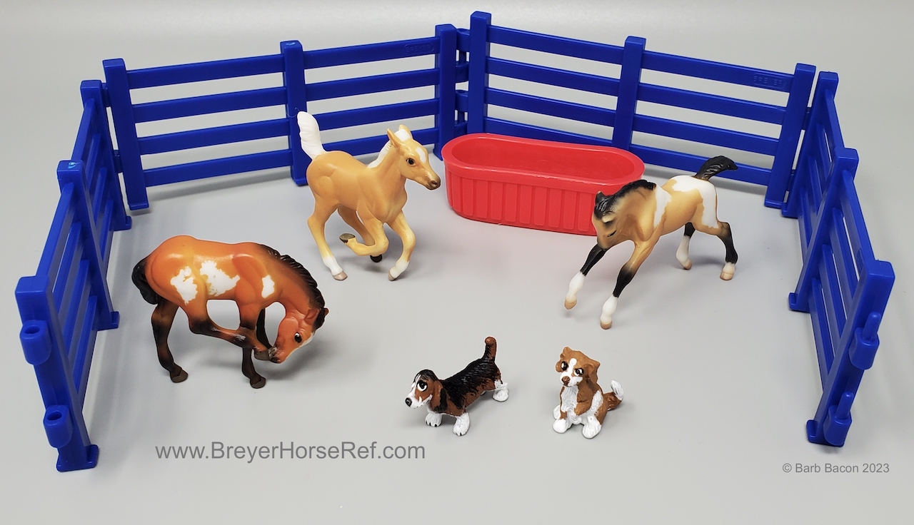 The Puppies and Foals Play Set #5302 was released 2006-2007. Set included the Cantering Foal, Scrambling Foal, Scratching Foal, Basset Hound, Begging Dog, Water Trough and Fence.